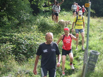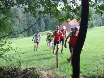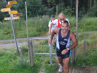 Anke, Helmut, Dieter - bergauf über Wurzeln |