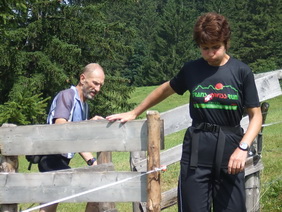 Burkhard öffnet den Elektro-Zaun für Anke (geladen! Aua) |